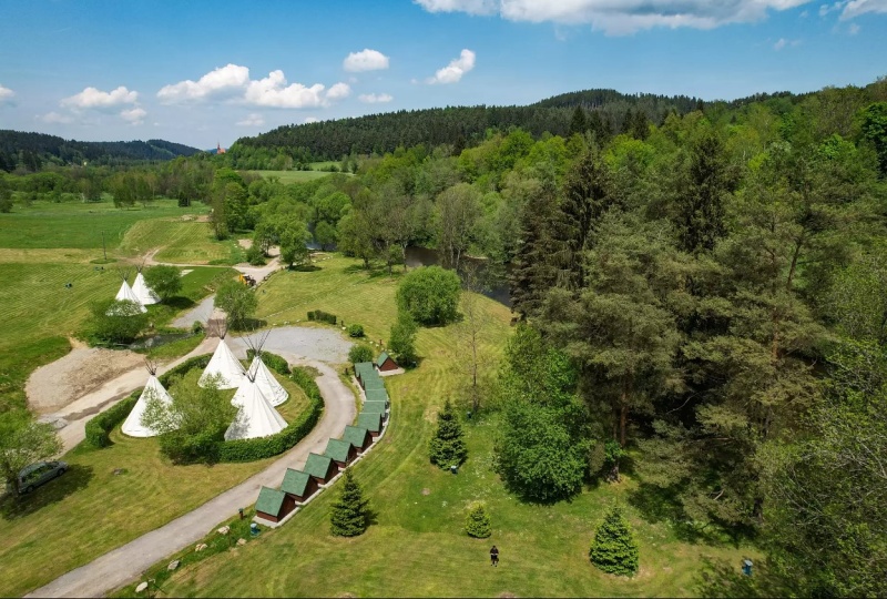 - spaní v tee-pee (8 tee-pee, každé až pro 12 osob),