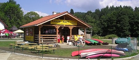 Vodácké cetrum, kemp, ubytovna, občerstvení, WC, pitná voda, garáž pro auta klientů